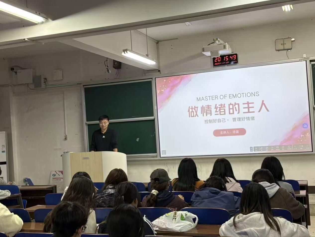 2025年11月13日,厚生国际教育学院在3208教室组织开展了一场以“做情绪的主人”为主题的心理信息员培训活动。本次活动聚焦情绪认知、转变、理论应用与实践赋能四大核心板块,通过专业讲解与互动实践相结合的方式,助力心理委员提升情绪管理能力,筑牢校园心理健康防线。