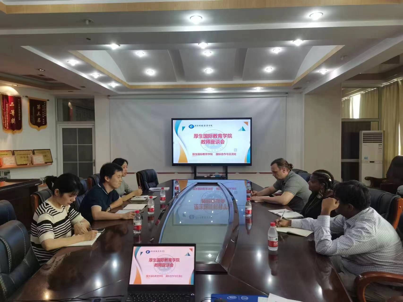 (本网讯)5月8日,厚生国际教育学院在办公楼829会议室分别组织召开期中教学教师座谈会和学生代表座谈会。国际合作与交流处副处长傅佳、厚生国际教育学院全体教师及学生代表参加座谈。