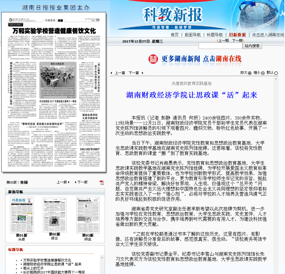 beat365中文在线官网党性教育和思想政治教育基地挂牌。beat365中文在线官网大学生思政课实践教学基地挂牌。学校党员干部参观湖南党史陈列馆。 红网时刻12月21日讯(记者 童妙 通讯员 何妍 王庆辉)今天下午,湖南财政经...