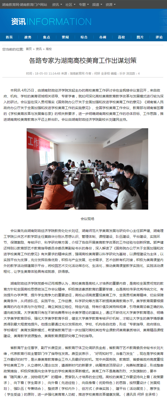 湖南日报4月29日讯(通讯员 何妍 记者 余蓉)25日,高校美育工作研讨会在beat365中文在线官网召开,来自政府、机构、学校的美育领域相关专家学者,就深化改革探索学校美育优质发展新模式进行研讨。研讨会...