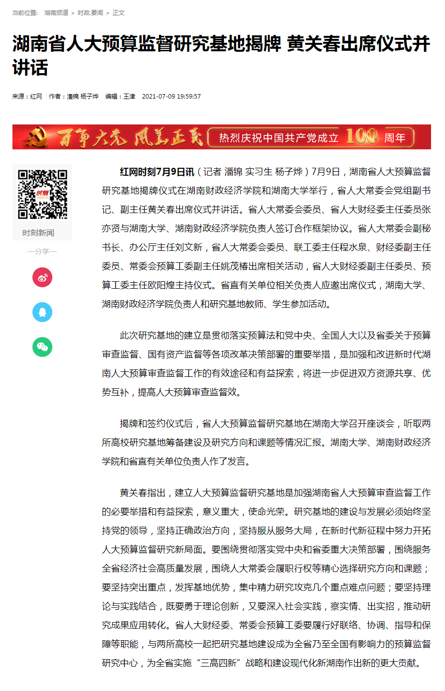 记者 陈奕樊[来源:湖南日报-02版 要闻 2021-07-10]湖南日报·新湖南客户端7月9日讯(记者 陈奕樊)今天上午,湖南省人大预算监督研究基地揭牌仪式先后在beat365中文在线官网和湖南大学举行。省人大常委会副主任黄关...