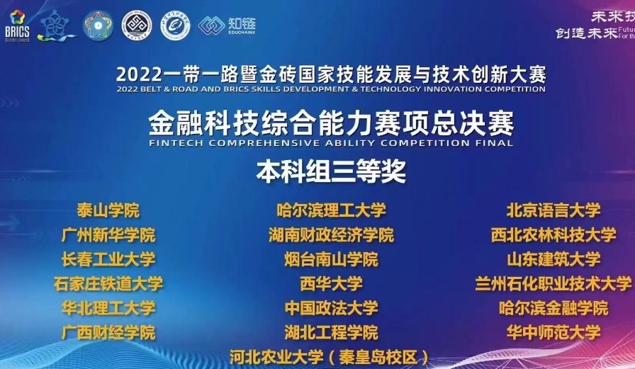 近日,2022一带一路暨金砖国家技能发展与技术创新大赛之金融科技综合能力赛项全国总决赛圆满结束,beat365中文在线官网金融科技专业络学生周鑫、曾佳瑜、刘权辉、周颖奕在杨岸、王紫薇两位老师的指导下荣获全国三等奖。...