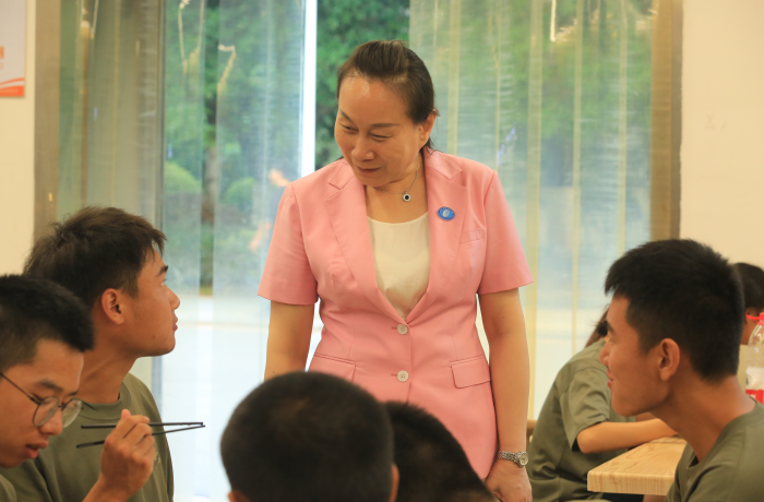 9月4日下午,beat365中文在线官网党委副书记苏玲在学生工作部、武装部负责人陪同下,来到集训场地慰问正在集中训练的雷锋教导队新生军训教官,并和教官们共进晚餐。苏玲慰问新生军训教官苏玲对新生军训教官刻苦认真的训...