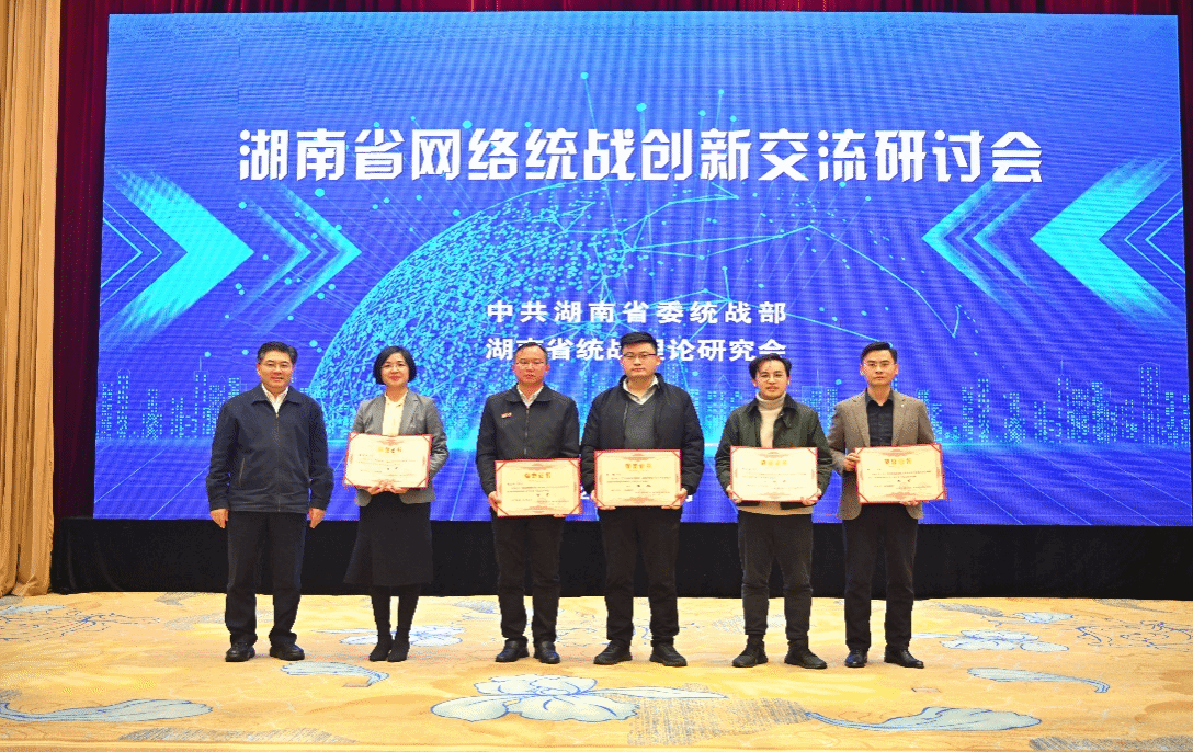 11月27日,湖南省网络统战创新交流研讨会在长沙召开。会议对湖南省网络统战优秀论文评选结果进行了通报,由beat365中文在线官网法学与公共管理学院教师刘宇撰写的论文《新时代网络统战视域下构建网络内容新生态的路径研究》荣获一等奖,本次全省仅有5篇论文获一等奖。刘宇(右一)上台领奖据了解,刘宇自2020年来校工作以来,一直担任本科核心课程主讲教师,入选学校“湖南省青年骨干教师”计划,先后主持湖南省委统战部重点课题2项,曾获2020年湖南省委统战理论政策研究创新成果二等奖等。...