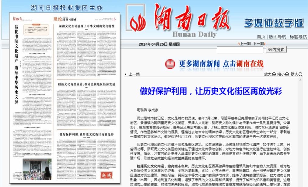 历史是城市的记忆,文化是城市的灵魂。去年7月以来,习近平总书记先后考察了苏州的平江历史文化街区、景德镇的陶阳里历史文化街区、天津古文化街,就历史文脉的保护与传承作出一系列重要指示。今年3月,在湖南考察调研期间,总书记又来到常德河街,了解历史文化街区修复利用、城市水环境综合治理等情况。作为涵养城市文脉的源泉、连接过去与未来的精神桥梁,历史文化街区是城市生命的一部分,承载着一座城市的文化记忆。做好保护利用工作,...