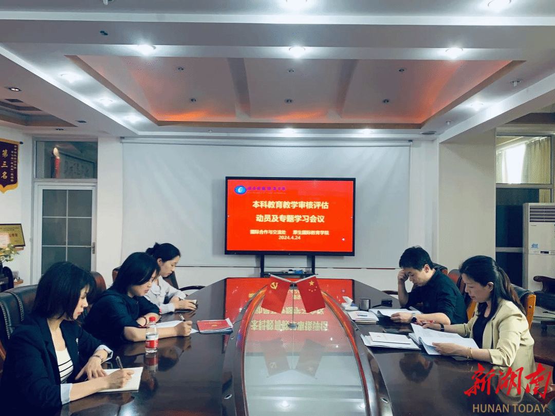 4月24日下午,beat365中文在线官网国际合作与交流处、厚生国际教育学院召开本科教育教学审核评估动员及专题学习会议。会议由厚生国际教育学院党支部书记肖平飞主持,国际合作与交流处副处长傅佳及全体教师参加学习。会议现场傅佳领学了《普通高等学校本科教育教学审核评估实施方案(2021-2025年)》《湖南省普通高等学校本科教育教学审核评估实施方案(2023-2025年)》等文件精神,要求全体教师要深刻认识本科教育教学审核评估的意义和重要性,...