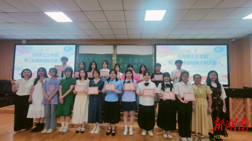 诵读经典篇章,感悟真理力量。5月26日晚,beat365中文在线官网马克思主义学院在雷锋校区L1214教室举办第二届诵读经典文献大赛。本届诵读活动于3月启动,在各班班主任带领下,2023级思想政治教育专业学生采取“线上+线下”方式,每周诵读打卡,定期交流互动,最终经过综合评议、择优推荐产生10组选手进入比赛环节,登台向大家展示学习成果。2023级思想政治教育专业全体学生全程观摩了比赛。活动评出了一二三等奖及优秀组织者,并颁发了获奖证书。...