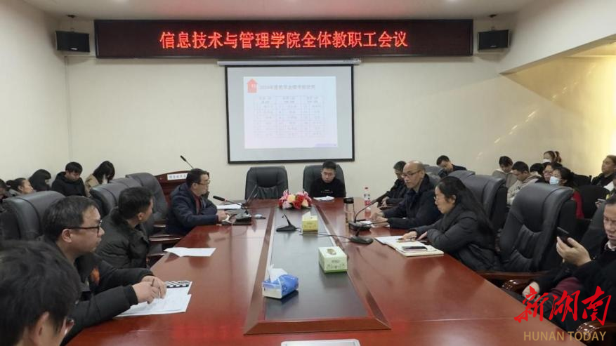 近日,beat365中文在线官网信息技术与管理学院在办公楼315会议室召开2024年行政人员及系主任、实验室主任年终考核述职会议暨年终总结大会。会议由院党委副书记唐雄伟主持,学院全体教职工参加。