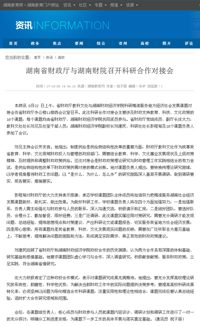 中国新闻网报道链接:http://www.hn.chinanews.com/hnjjdy/jjzh/2017/0928/17671.html 红网报道链接:http://gov.rednet.cn/c/2017/09/28/4437950.htm