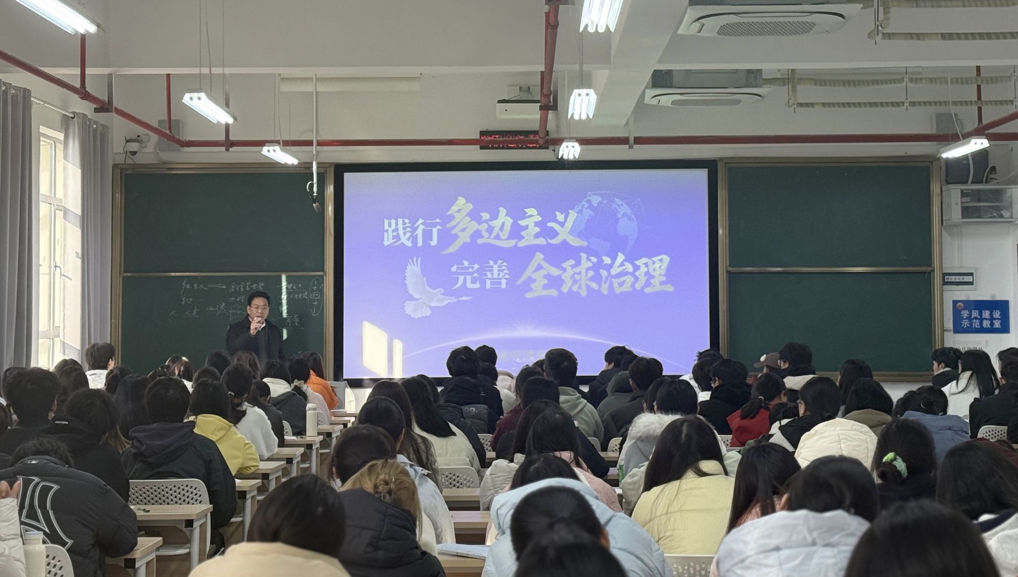 (本网讯)为深入贯彻落实习近平总书记关于学校思政课建设的重要指示批示精神,充分发挥学校领导在教育教学中的引领示范作用,近期,学校领导班子成员相继走上讲台,以创新理论、严谨逻辑、生动语言和鲜活事例,为同学们带来一堂堂富有思想性、理论性和亲和力的思想政治理论课。校党委书记易棉阳以“践行多边主义,完善全球治理”为题,从宏观视野深入剖析世界百年未有之大变局与中华民族伟大复兴战略全局的内涵要义、动力机制和未来前景,...