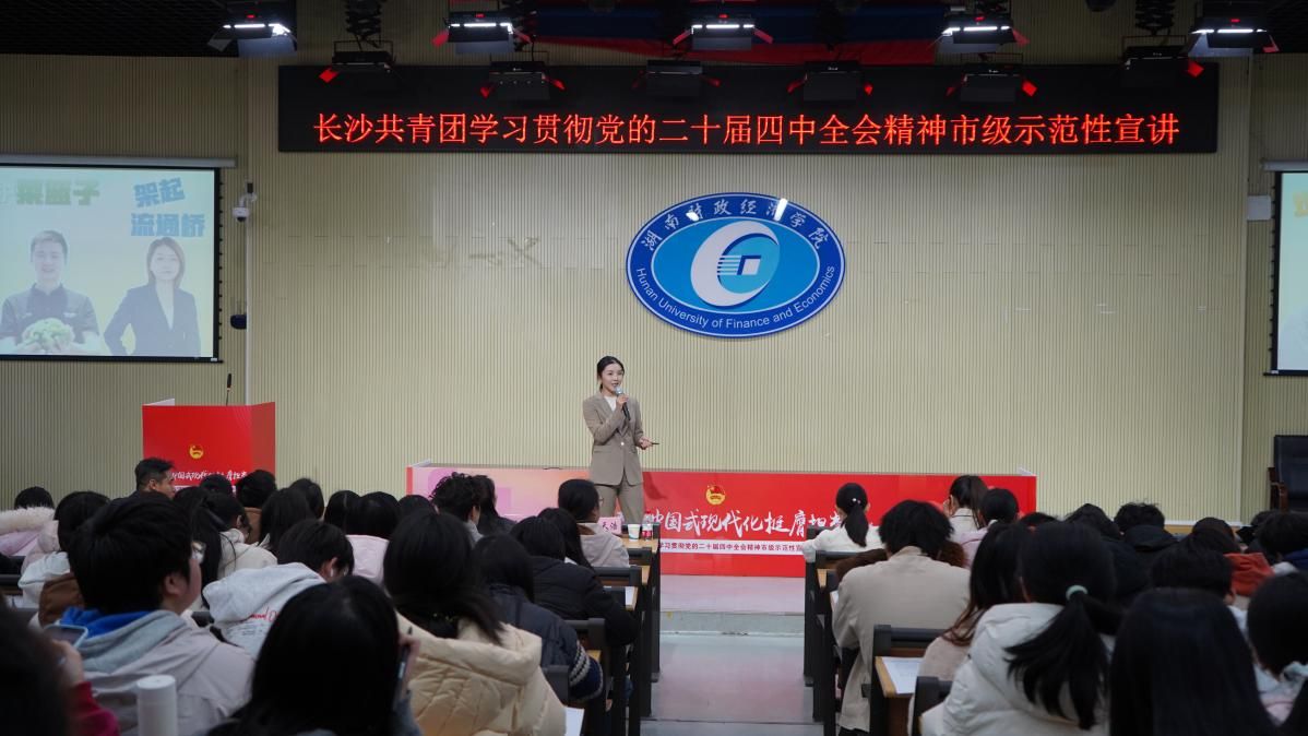 (本网讯)12月17日,“青春为中国式现代化挺膺担当”长沙共青团学习贯彻党的二十届四中全会精神市级示范性宣讲在beat365官网二教学楼2J03报告厅举行。校团委负责人、“青马班”240余名学员现场聆听。青年讲师用“青言青语”解读党的二十届四中全会精神为引导青年深刻领会全会精神,4名青年讲师走上宣讲台,用故事化表达、场景化解读搭建起理论与青年的“连心桥”。团中央青年讲师团讲师曾梦芳以“将青春融入强国复兴伟业”为题,结合神舟飞船太空烹饪、...