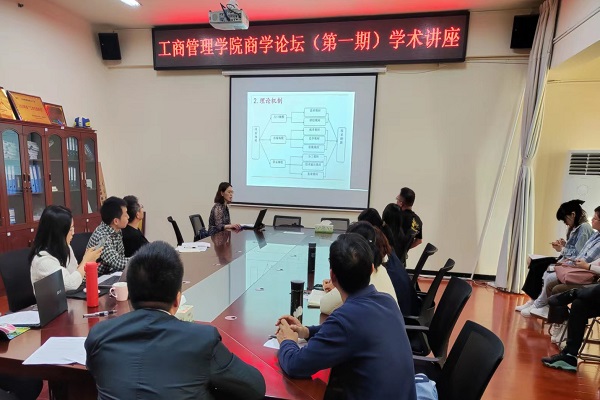 (本网讯)10月20日下午,工商管理学院首期“商学论坛”在学院办公室举行。学院陈琦教授和王竟竟博士担任论坛主讲。学院院长刘铁明、副院长杨鹏及全体教授、博士聆听了报告。 活动现场陈琦围绕“国家规模影响技...