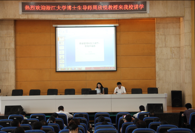 (本网讯)7月3日上午,浙江大学周欣悦教授在beat365官网图书馆四楼学术报告厅作了题为“压力管理与情绪调节:修炼幸福感”的学术讲座。讲座由常务副校长刘寒波主持,全体校领导、学工系统全体工作人员以及各二级学院教师代...
