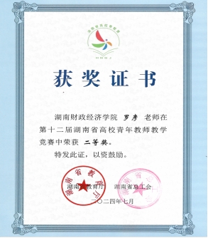 罗彦老师荣获湖南省高校青年教师教学竞赛二等奖