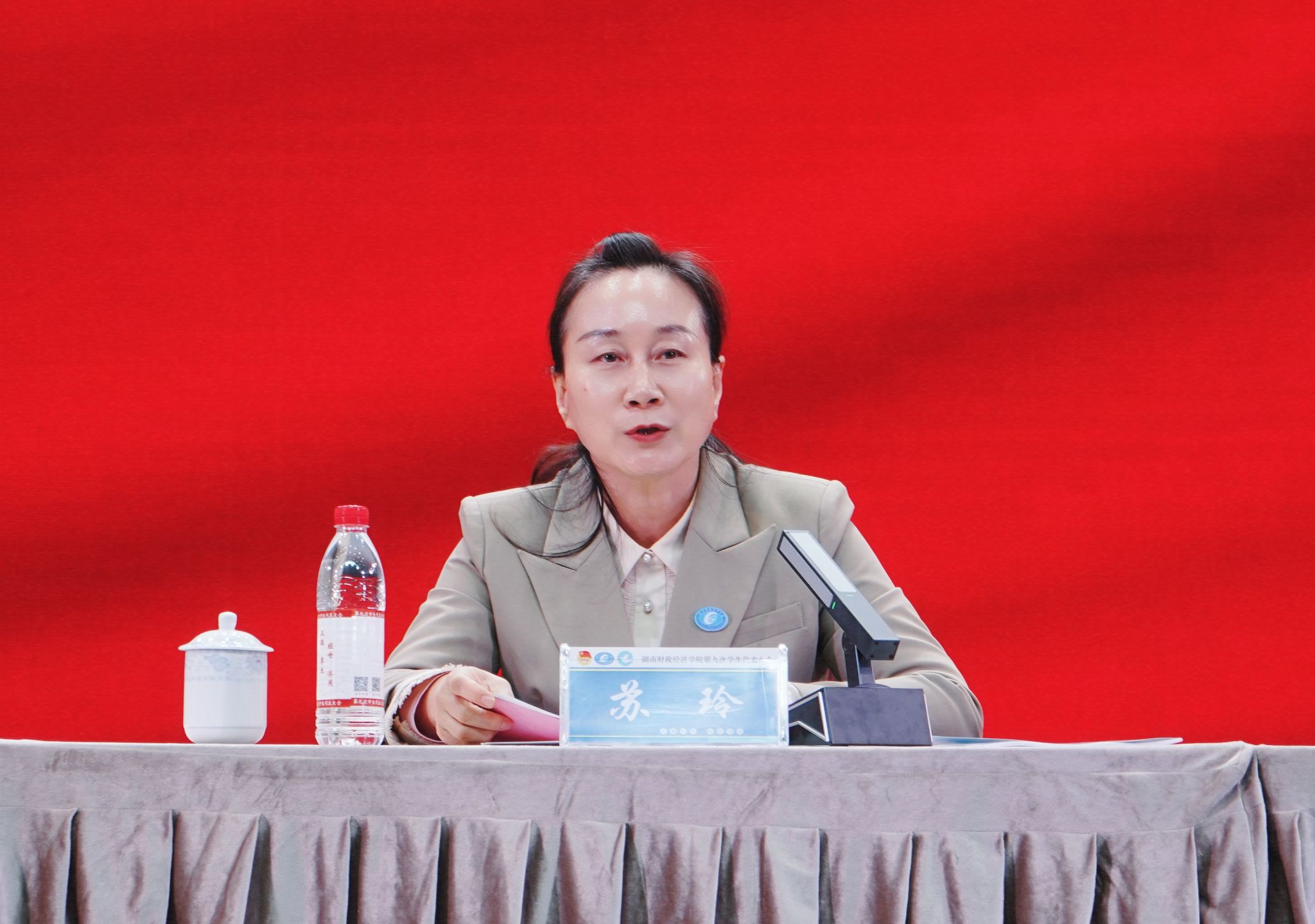 苏玲代表学校党委对大会召开表示祝贺,对校学生会过去一年在思想引领、权益维护、校园文化建设等方面的工作成果给予肯定。她强调,校院两级学生会要坚持以习近平新时代中国特色社会主义思想为指导,践行“全心全意为同学服务”的宗旨。结合新时代青年工作要求,她对学生会工作提出三点要求:一是强化政治引领,筑牢青年思想根基。要以党的创新理论武装头脑,通过构建系统化学习体系、打造学生喜闻乐见的理论载体,推动党的创新理论与财经专业知识深度融合,切实筑牢青年学生听党话、跟党走的思想根基。二是聚焦财经特色,精准对接学生需求。要立足学校财经办学特色,精准对接学生在学业发展、权益维护等方面的现实需求,健全与青年学生的常态化沟通机制,引导青年学子将个人成长融入学校发展大局与民族复兴伟业,在百年未有之大变局中勇担时代重任。三是深化组织改革,提升服务效能。要自觉践行校训精神,以更扎实的工作成效助力一流应用型大学建设,为推进中国式现代化贡献湖财青年力量。