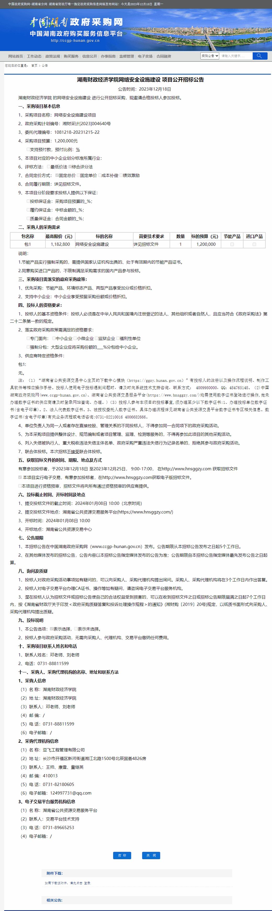 湖南省政府采购网:beat365中文在线官网网络安全设施建设项目公开招标公告