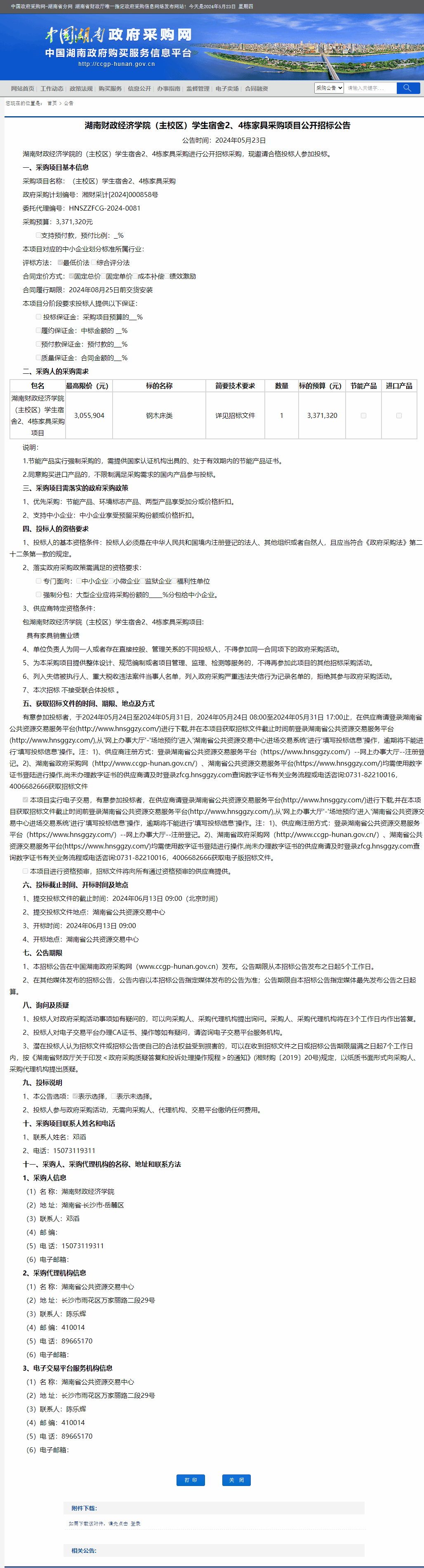 湖南省政府采购网:beat365中文在线官网(主校区)学生宿舍2、4栋家具采购项目公开招标公告