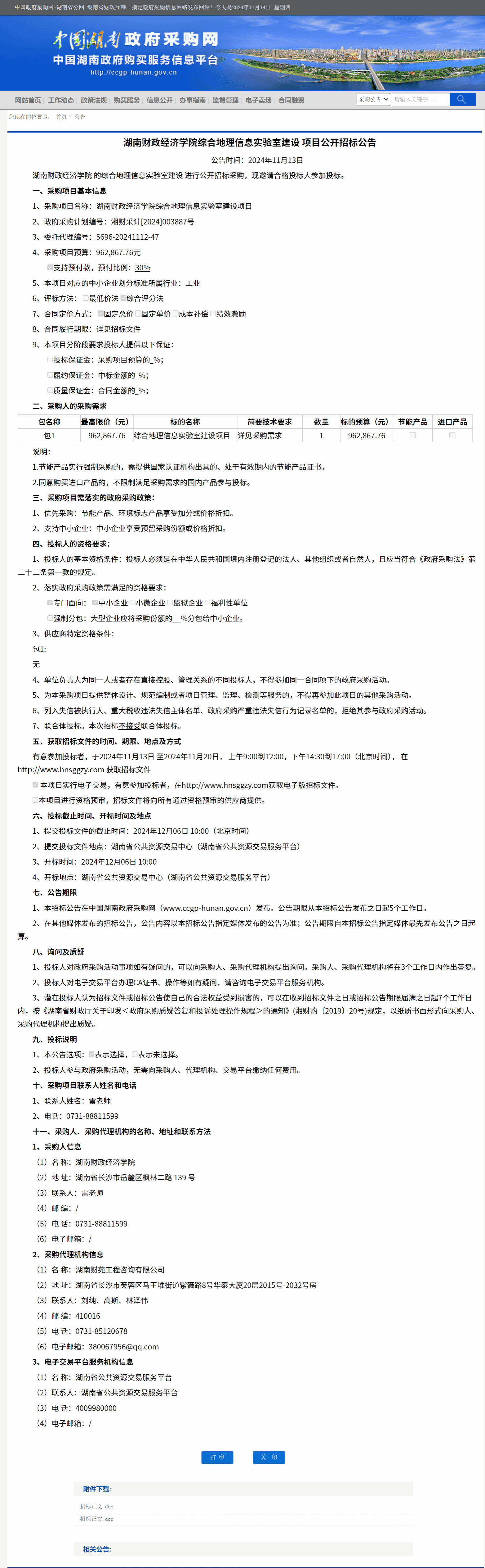湖南省政府采购网:beat365中文在线官网综合地理信息实验室建设项目公开招标公告