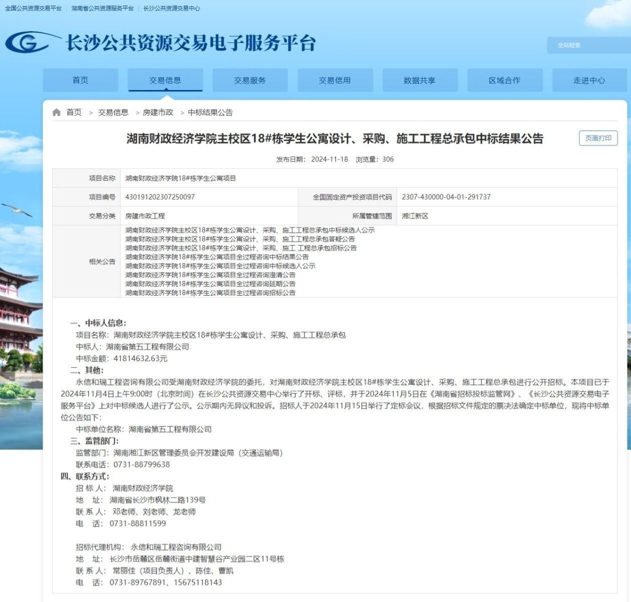 beat365中文在线官网主校区18#栋学生公寓设计、采购、施工工程总承包中标结果公告
