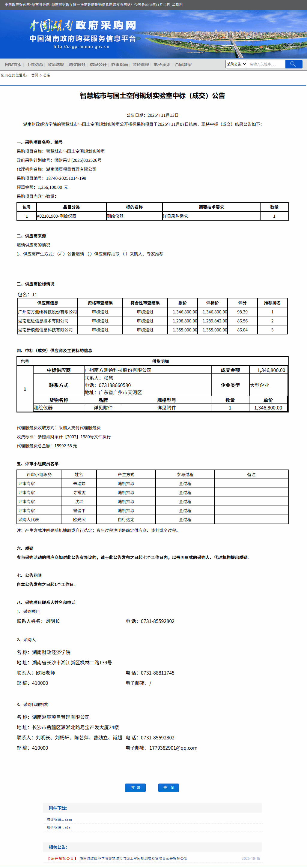 湖南省政府采购网:beat365中文在线官网智慧城市与国土空间规划实验室中标(成交)公告