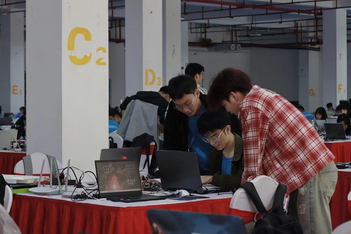 赛场上,参赛选手们注意力高度集中,思维缜密。他们每3人一队,或在创意赛上认真演示,积极答辩;或在技能赛上谨慎操作,大展技能;或在挑战赛上编写程序,设计代码。他们充分发挥团结协作精神,在赛场上各显身手,一决高下。