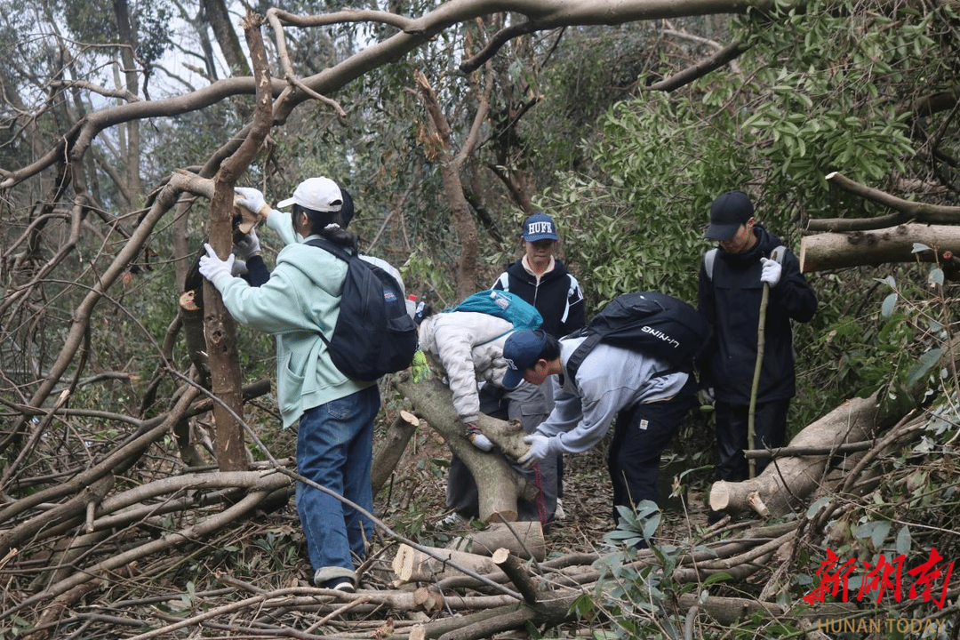 初春期间出现的霜冻冰雪天气,导致岳麓山景区内出现了较为严重的树木倒伏现象。3月2日,beat365中文在线官网体育学院学生志愿者联合长沙岳麓蓝天救援队、长沙市户外登山运动协会在岳麓山景区开展受损植被与道路清理修复活动,为保护岳麓山生态环境作贡献。