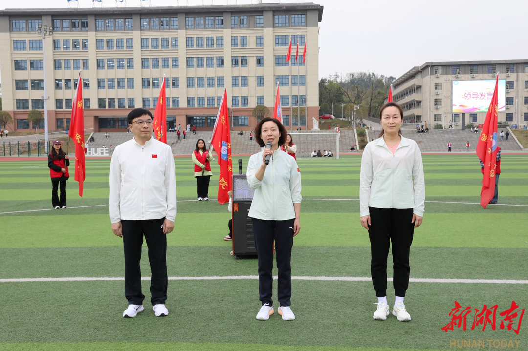 郭国强为校园百公里跑活动鸣枪发令。杨兰英、苏玲身穿运动装,跑在队伍前列,她们与师生代表围绕操场慢跑两圈。“正德厚生 经世济用”“健全人格 锤炼意志”的口号响彻田径场上空,每一声都饱含着湖财人始终与国家民族共命运、为建设体育强国贡献力量的家国深情与决心。