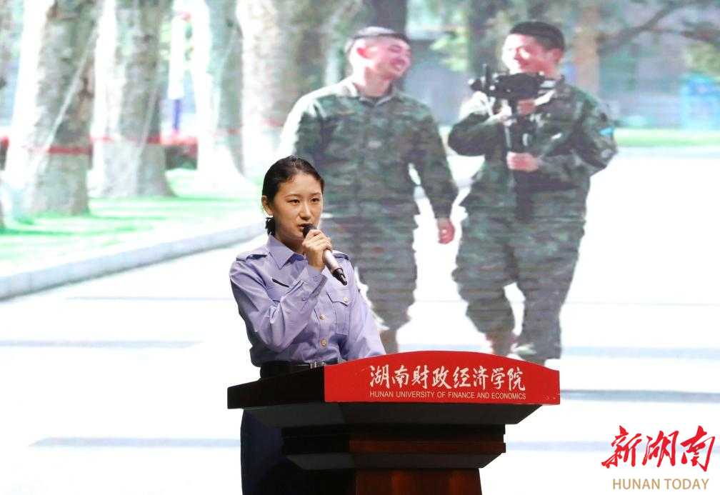 苏玲对全体学生提出三点希望:一是赓续红色血脉、厚植爱国情怀;二是谨记居安思危,砥砺奋进不息;三是秉持初心不改,投身国防建设。她谆谆寄语勉励湖财学子将赤诚爱国之心化为拳拳报国之行,主动投身到军营中磨砺人生、施展才华,在强国强军的伟大实践中实现人生梦想。