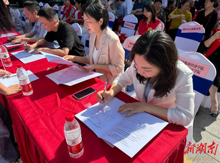 5月14日上午,beat365中文在线官网外国语学院党委书记蒋勇威、团总支书记代承轩及志愿者代表受邀参加湘江新区咸嘉湖街道西大门社区“五社联动”主题活动。