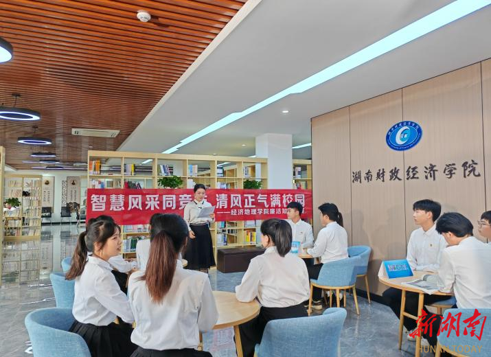 “话廉润心”文化传廉。举办清廉主题故事会和谚语传颂会,深入挖掘中华优秀传统历史文化中的廉洁元素,让一条条清廉谚语、一个个廉吏故事从书本上走出来、活起来,穿越时空沟堑,播撒清廉的种子,不断加强文化自信,引导师生崇廉尚廉,让廉洁文化春风化雨沁润心灵。召开“清廉经地”师生座谈,学院青年博士教师围绕“清廉教育与地理学科”“地理课程设置和清廉教育”等方面与学生深入交流,联系专业实际为青年学子上清廉教育课,深挖专业中蕴藏的清廉因子,培养学生的清廉意识,使其成为具有道德责任感和公民意识的国家建设者。