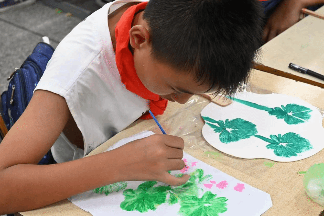 在劳动教育实践中,志愿者们带领同学们动手制作莲蓬杯垫,直观感受到莲花“中通外直,不蔓不枝”的正直特性,初步建立起对廉洁文化的感性认识。随后的科学课、诵读名篇环节,同学们在剥开莲子、莲叶的过程中了解莲子的结构以及莲叶“滴水不沾”的特性,并诵读历代咏莲名篇,进一步领略古人寓于莲花清廉自守的崇高精神,在文学的浸润中提升对廉洁文化的理解与认同。为丰富实践体验,活动还融入了艺术创作环节,同学们亲手绘制“夏日荷风扇”,将廉洁理念融入画笔之下,以画传情、以艺载道。志愿者们还为同学们讲述了古今清廉典范故事,激励同学们以史为鉴,向先贤学习。