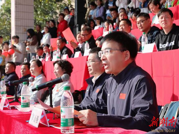 杨兰英宣布运动会正式开幕,烟花齐绽,全体与会领导一起活力“开跑”,点燃了现场等待比赛运动员的热情。