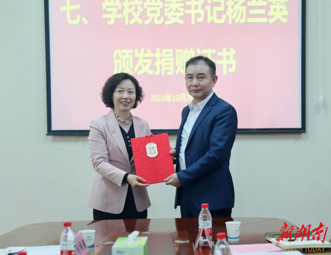 湖南财院党委书记杨兰英、党委副书记苏玲,财务处、就业创业中心(校友联络中心)主要负责人,会计学院领导班子成员及教师代表出席捐赠仪式。
