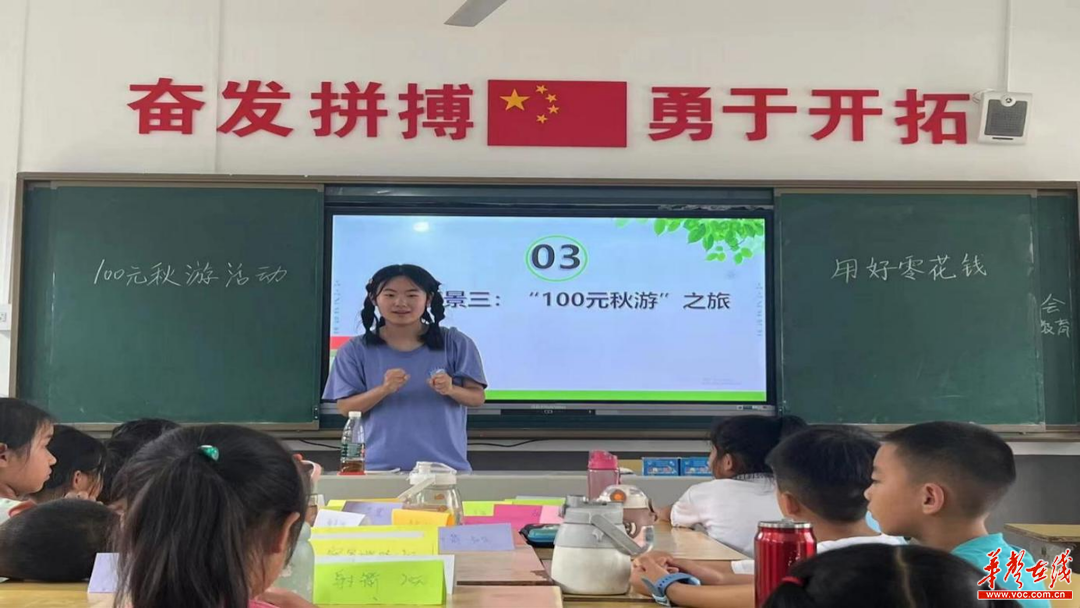 大拇指义工志愿服务队赴平江县泉水村围绕少儿财商课堂、爱心支教、红色传承以及探访乡村振兴道路上的新农人四个方面,开展为期15天的志愿服务活动,志愿者为孩子们教授红色文化与红色课程,为中国非遗文化的传承播撒下种子,帮助孩子们塑造正确的价值观,促进他们健康快乐成长。同时,实践队通过宣讲会和家访的形式给村民科普金融防诈骗知识,帮助村民防范金融风险,并继续深入基层,奏响青春之“乐章”,共赴时代之“山海”,为泉水村的发展助力献策。