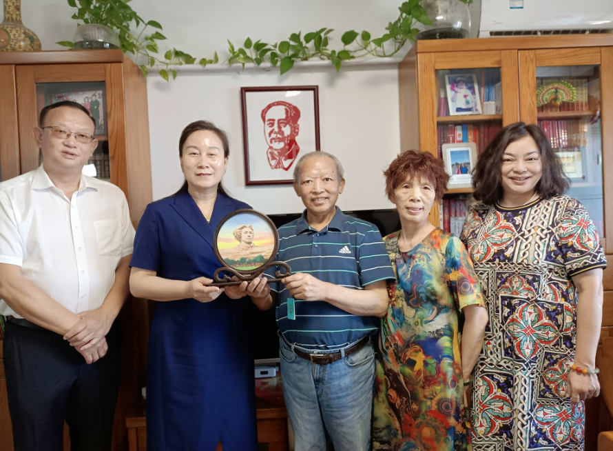 苏玲(左二)一行看望学校老领导鲁亮升(中)