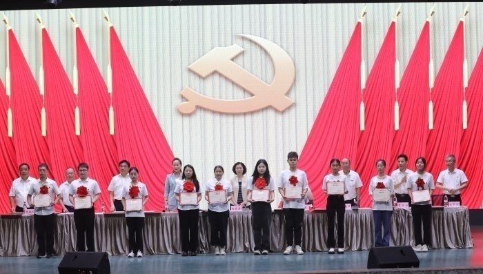 学校领导为受表彰的先进集体和先进个人颁奖 陈治丽/摄