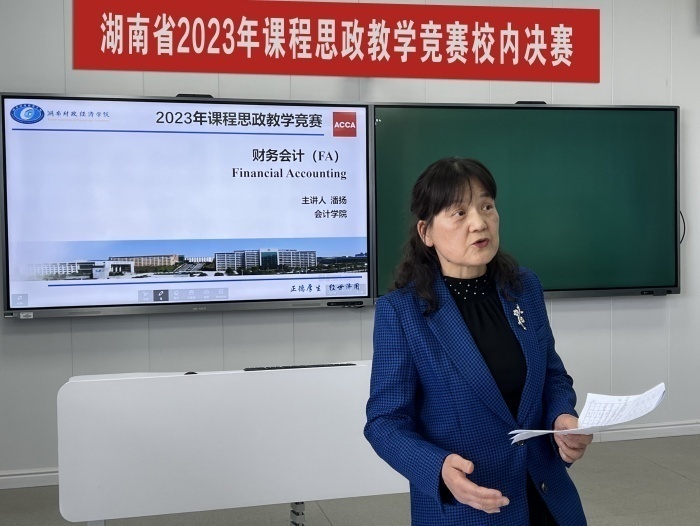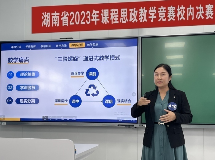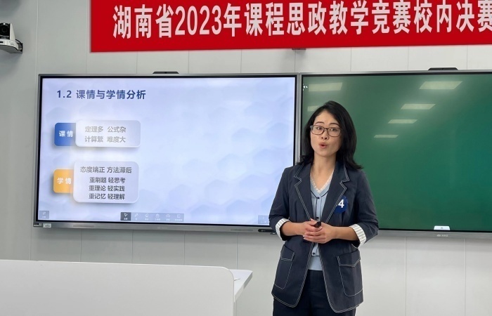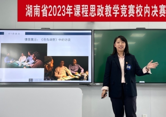 近日,beat365中文在线官网在二教学楼2617智慧教室举行湖南省2023年课程思政教学竞赛校内决赛。经过各教学单位层层选拔,25位专任教师晋级决赛,同台竞技,为全校教师呈现了一场精彩纷呈的教学盛宴。比赛由教务处副处长张晓鹏主持。