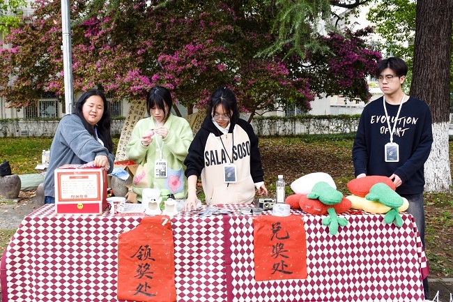 大礼堂前坪,露天游戏、文创集市、摊位互动NPC、小红花碎片、雷锋故事等活动吸引更多学生参与到影像艺术节中来,进一步加深学生对雷锋精神的认识和理解。