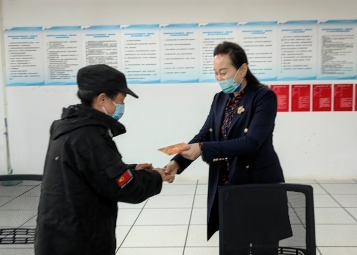 苏玲一行看望慰问了雷锋校区保安岗亭、学生宿舍楼、办公楼等地在岗员工,感谢他们为学校安全稳定工作做出的贡献,并代表学校为他们送去了慰问金和新春佳节的美好祝愿。