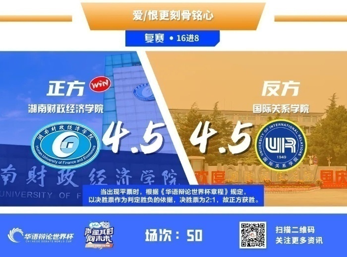 华语辩论世界杯是由国际关系学院、人民日报《环球人物》杂志社和华语辩论世界杯组委会共同举办的大型青年文化活动,是首屈一指的大型国际辩论赛事。本届世界杯中,来自全球4个大洲的48所高校从各赛区脱颖而出进入总决赛,齐聚线上展开激烈角逐。学校辩论队代表湖南省参加总决赛。
