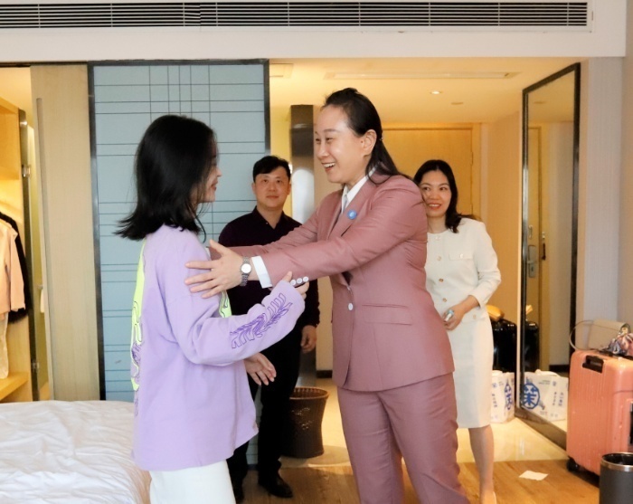 学校对敖姝捐献造血干细胞的事迹高度重视,副校长苏玲,学生工作处处长杨锴,数学与统计学院院长尹向飞、党总支书记吴建国、副院长范国兵、党总支副书记杨艳一行专程前往医院、宾馆看望敖姝,并送去鲜花和关爱慰问金。苏玲关切询问了敖姝的身体状况,高度赞扬了她捐献造血干细胞的善举,嘱咐她要按照医嘱养好身体。苏玲说,在全党全国上下掀起学习宣传贯彻党的二十大精神热潮之际,作为中共预备党员的敖姝用实际行动践行党的二十大精神,彰显了当代青年的责任与担当。近两年学校学子黄丹青、敖姝先后捐献造血干细胞和淋巴细胞挽救白血病患者,他们是学校优秀青年的代表,也反映出学校培养具有“雷锋气质”的财经新人的积极成效。学校会广泛开展学习敖姝同学先进事迹的活动,激励更多的团员青年参与到志愿服务的队伍中来,用爱心感恩社会、用行动回报社会。