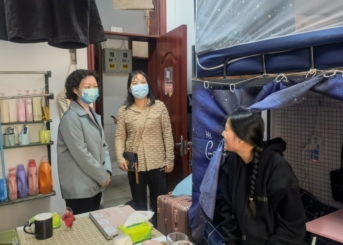 深入学生宿舍与学生交流 何妍/摄
