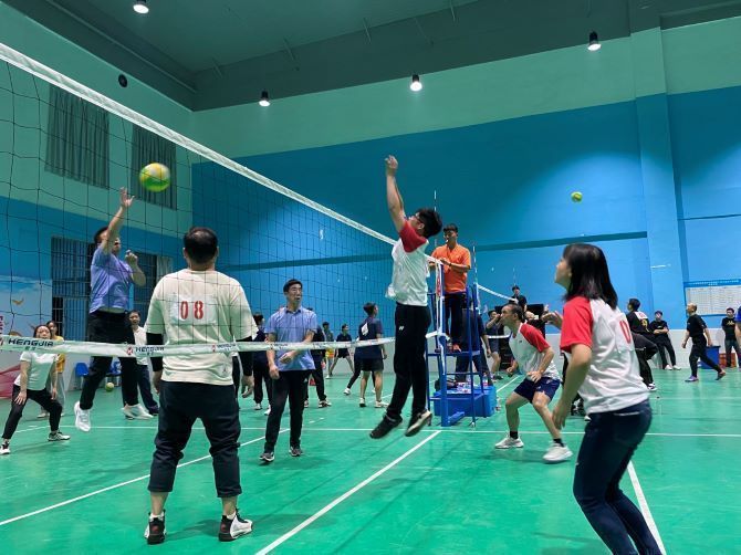 本次比赛共有18个分工会的180余名教职工参加比赛。赛制为男女混合5人制,采用分组单循环赛与交叉名次赛决出所有队伍名次。赛场上,运动员们身姿矫健、顽强拼搏,发球、接球、传球、扣球、拦网、扑救……每一个细节都展现了精湛的个人技术和默契的团队配合。赛场外,观众热情高涨,加油声、呐喊声、欢呼声此起彼伏。