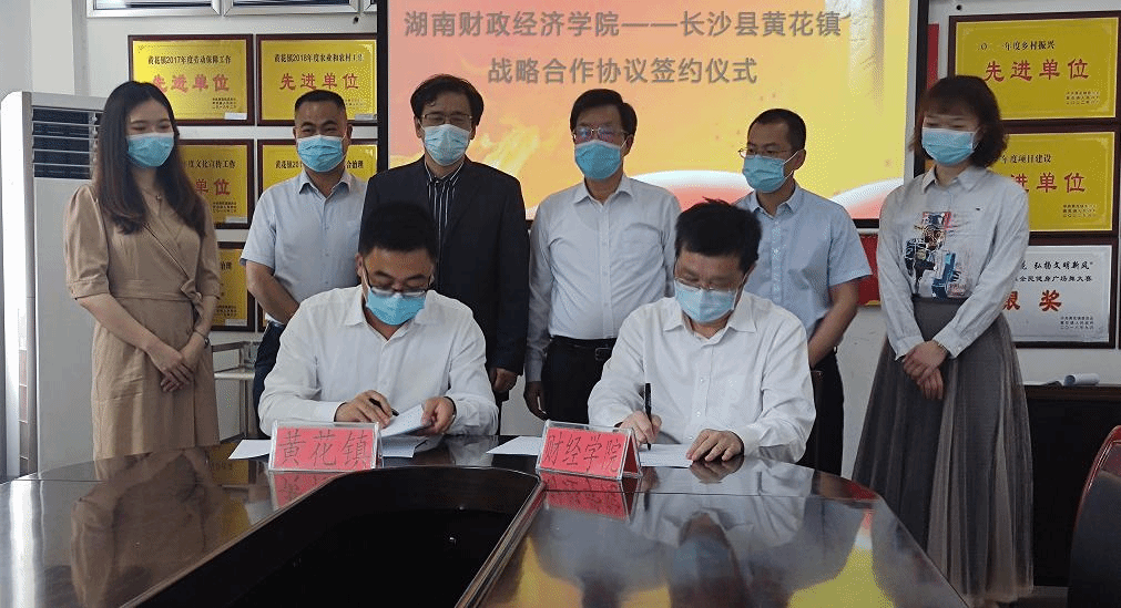5月7日上午,beat365中文在线官网与长沙县黄花镇战略合作协议签约仪式在黄花镇银龙村村部举行。校长刘长庚,黄花镇党委副书记、镇长冯城分别代表校地双方签字,省政协常委、省委改革办原常务副主任曾剑光,黄花镇和学校财政经济发展研究院、经济学院有关负责同志共同见证签约。