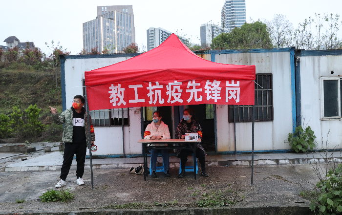 教职工抗疫先锋在巡查校园 何妍/摄