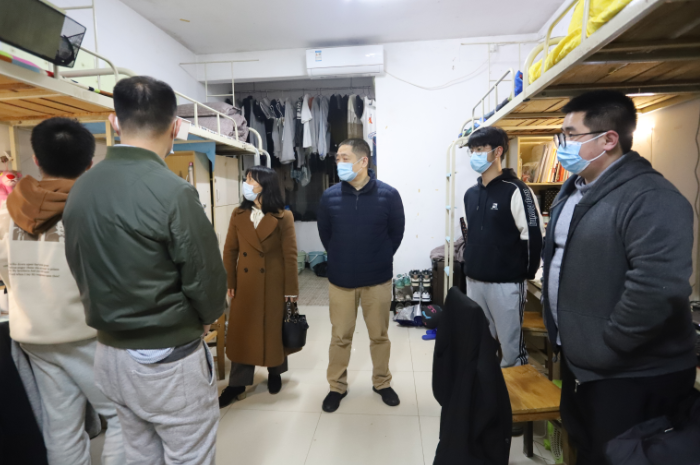 在主校区学生公寓,肖湘愚看望慰问学生和工作人员,认真询问学生宿舍日常防疫工作开展情况,了解疫情防控期间学生们思想动态和应届毕业生考研、就业等情况。他强调,要进一步统筹安排好疫情防控、教育教学和安全管理等各项工作,切实把疫情防控工作抓紧抓实抓细抓好,要关心爱护学生,了解学生需求,掌握学生出入公寓情况,同时从各流程、各环节加强部署,确保师生健康和校园安全。他嘱咐学生要严格遵守学校的疫情防控要求,进一步提高自我防护能力,养成良好的卫生习惯,宿舍勤打扫、多通风,加强体育锻炼,提高身体素质,保持乐观心态,积极应对困难,不断充实自我。