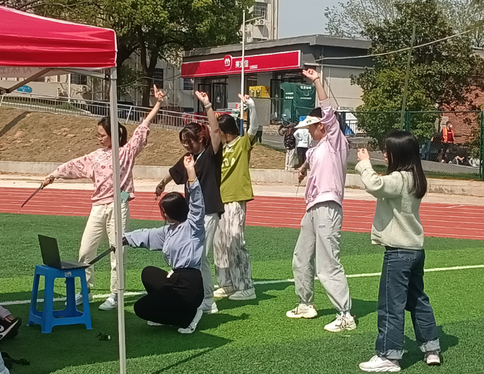 beat365中文在线官网体育学院教师戴狄夫正通过腾讯会议平台在线教授雷锋校区剑术班学生初级剑套路的动作要领。学生们在操场上认真观看视频,跟着老师的讲解练习。