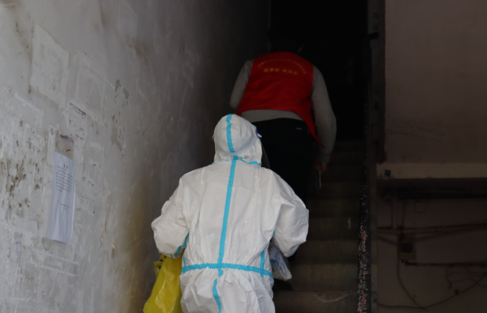 疫情发生以来,学校专门安排学生宿舍十号楼用以集中隔离健康码出现“黄码”的疑似密接学生。每天下午,学生志愿者万家俊都会跟着街道卫生服务中心谢医生到隔离点,为隔离学生进行上门核酸采样。“谢医生不让我跟着她进隔离房间,她采样完脱掉了防护服才敢靠近我。”万家骏每次都要接触数十位被隔离的学生,提醒他们戴好口罩打开房门,扫描他们的健康码查验信息,然后退到门外等待谢医生采样。
