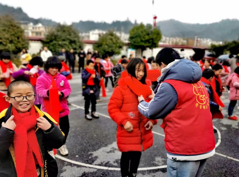 1月11日,该校学生编织的红围巾被送到了常宁市塔山瑶族乡狮园完小。大学生志愿者们逐一为小朋友们佩戴红围巾,让他们感受到大哥哥大姐姐们亲手编织的温暖。小朋友们逐字细读着寄语,脸上露出纯真的笑容,现场暖意浓浓。小朋友们还表演了手语《感恩的心》,用最朴实的方式表达了他们内心最真挚的感谢。