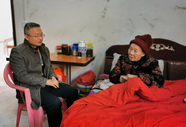 刘钟理与邓新平母亲交谈了解其家庭现状和身体状况